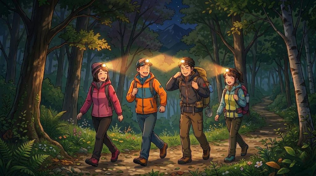 実は、登山における「道迷い」や「救助要請」の多くは、夕暮れ時の焦りから発生します。今日は、たとえ1時間のハイキングであっても、登山者が必ず持っておくべき**「ヘッドランプ」の重要性**についてお話しします。